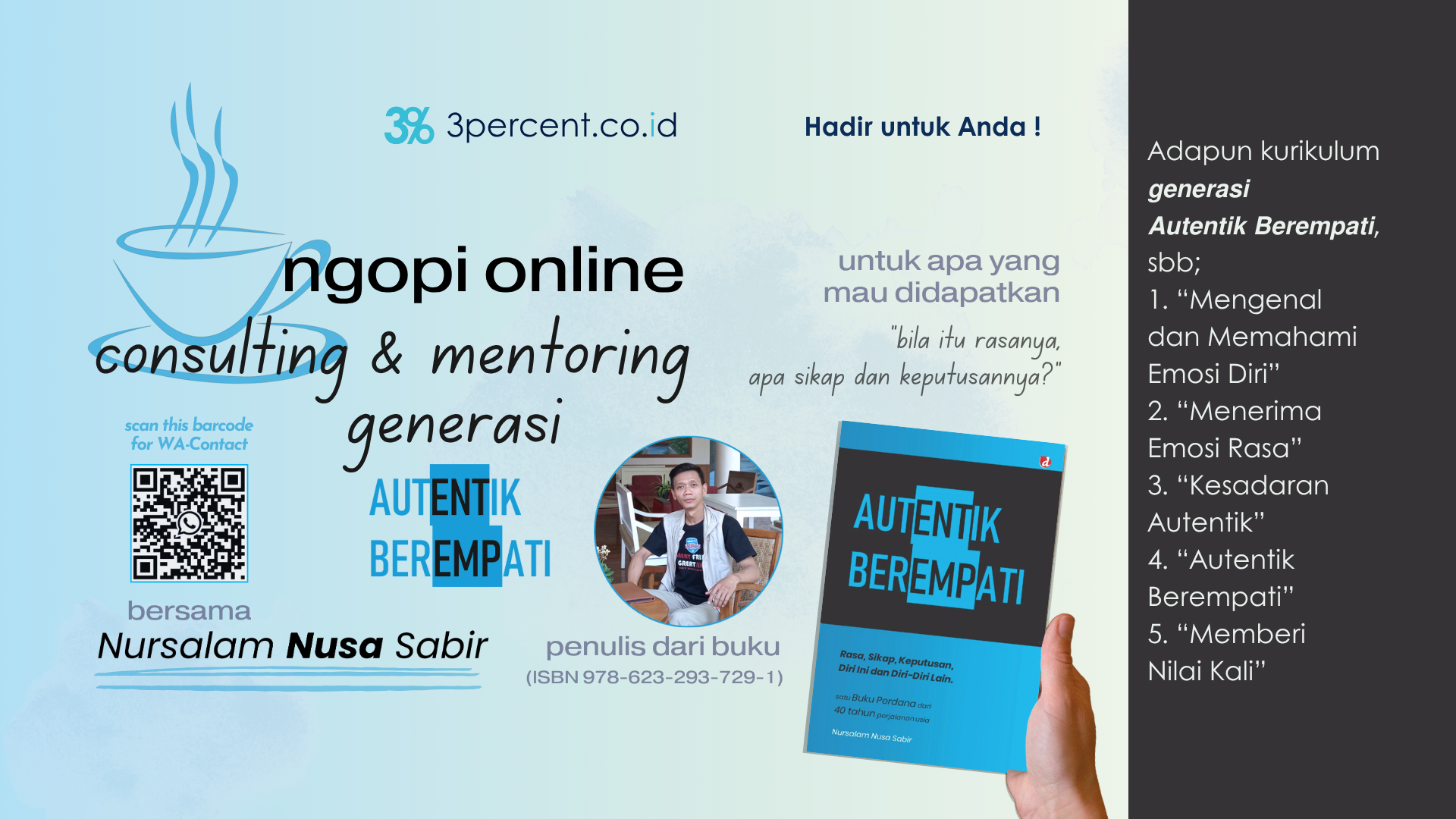 Ini seperti ngobrol dengan teman lama, dengan banyak diberikan apresiasi sehingga terkonek dengan emosi dan value diri saya, serta mendapatkan sudut pandang baru dari program professional coaching di 3percent.co.id ini.